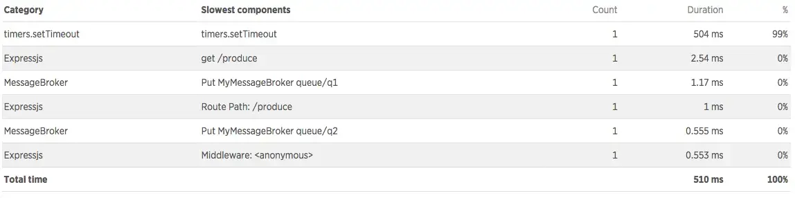 APM conveniently groups and reports operations that interact with queues. By analyzing this information, you can more easily identify bottlenecks and areas for performance improvement in your message passing architecture.