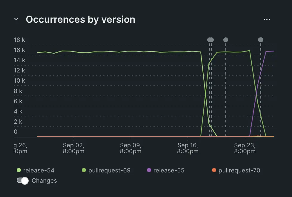 Once you have instrumented version tracking, your error groups will automatically capture data from each release. You can filter by each version.