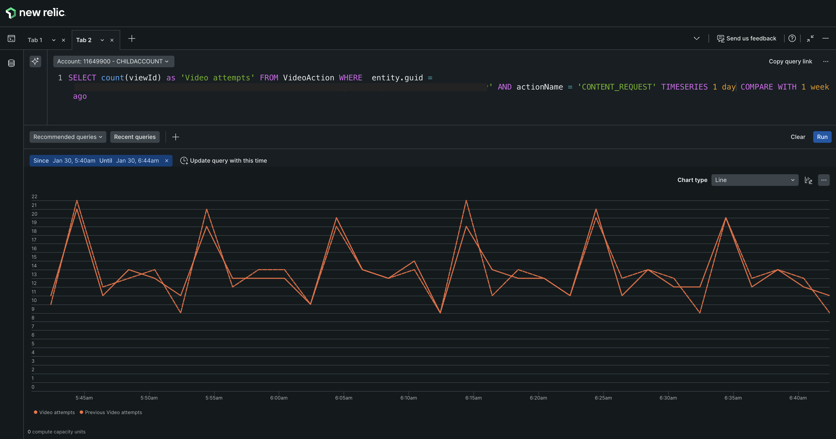 Generate a prediction of the graph using NRQL query. For example, generate a time series of event from 1 day and compare it with 1 week ago.