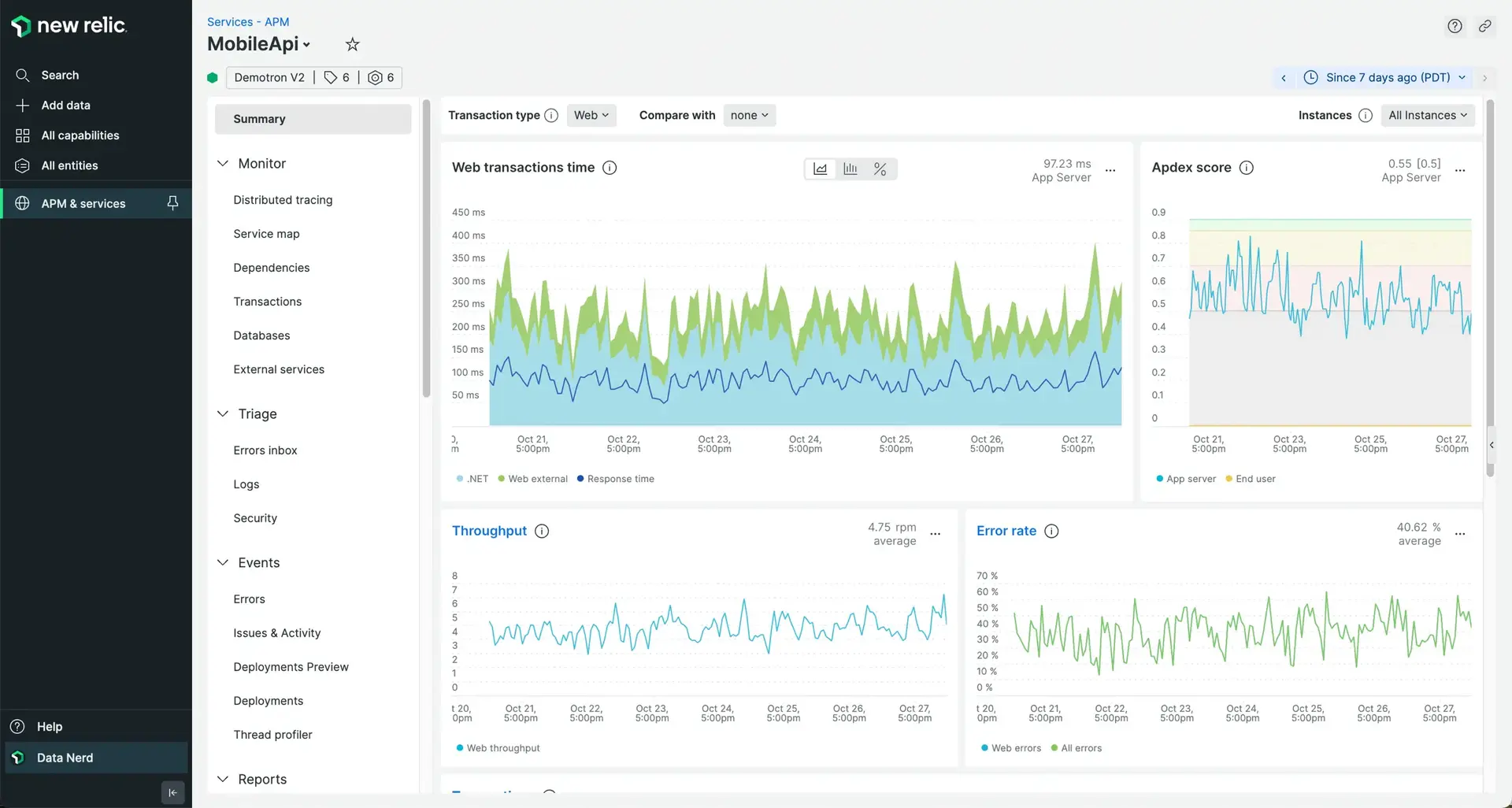 As the Create an effective service name section indicated, one of the primary objectives of instrumentation is to configure the New Relic agent to group similar runtime constraints together as a single named unit. For a specific set of inputs, you should get an expected range of measurable outcomes. The degree to which we can comfortably contain these into named service runtime components greatly helps us understand normal behavior and isolate issues.